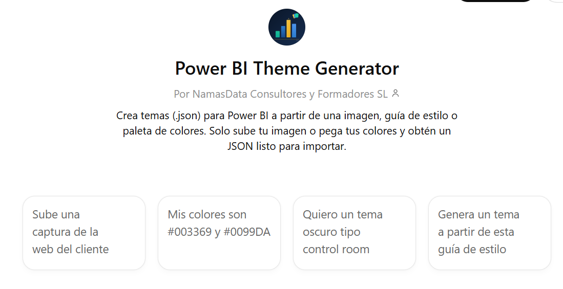 Power BI Theme Generator: genera temas corporativos con IA (GPT gratuito)